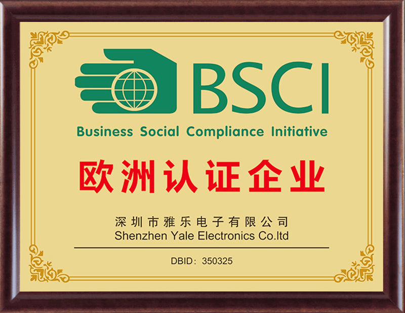 Since its establishment, Yale Electronics has passed ISO9001:2015, CCC of China, BSCI of Europe, CE & RoHS of EU, and FCC of US etc. It has also won honors such as "National High-Tech Enterprise", "Guangdong Top Brand", "Shenzhen Top Brand", and "AAA Credit Enterprise"...