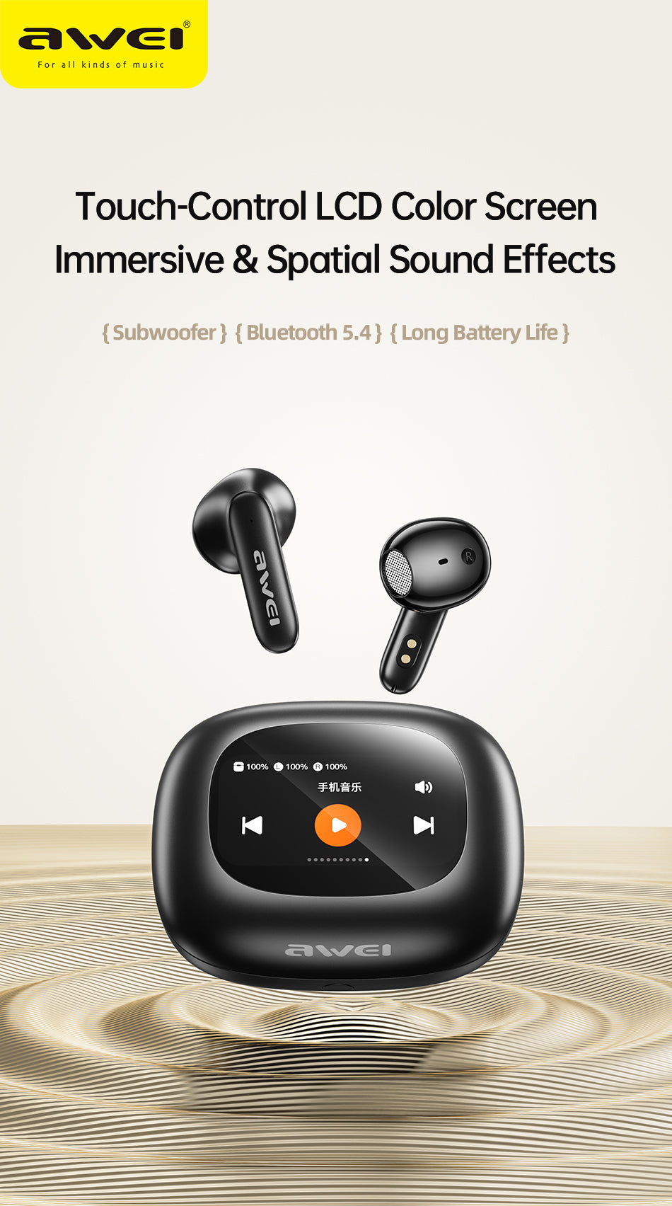 AWEI T56ANC Touch Color Screen Bluetooth Headset